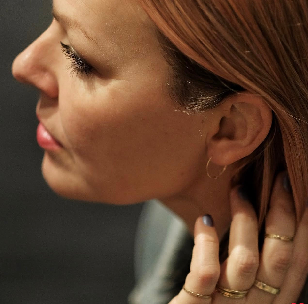 Thin hoops in solid 18 k gold, medium color. Wear solo, combine different sizes, stack with your favorite studs, or add a charm for that extra bling-look.