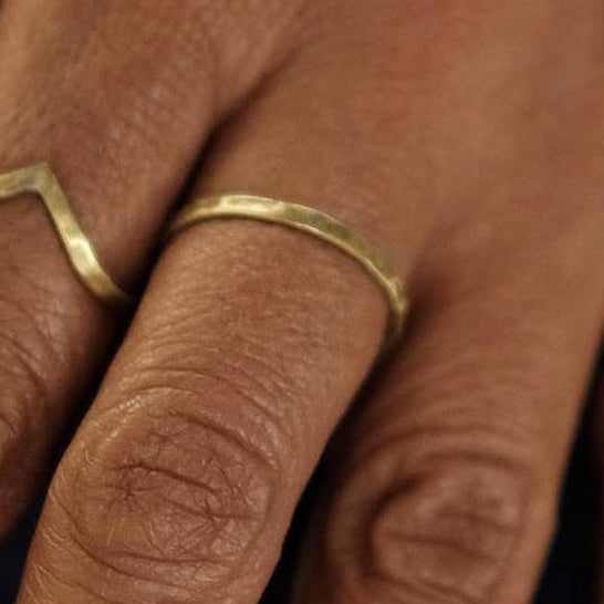 This BRASS ring will become one of your favorites from the get-go. The hammered texture gives grit and lovely energy. Stack or wear solo, as thumb ring, upperfingerring or simply as a regular ring.
