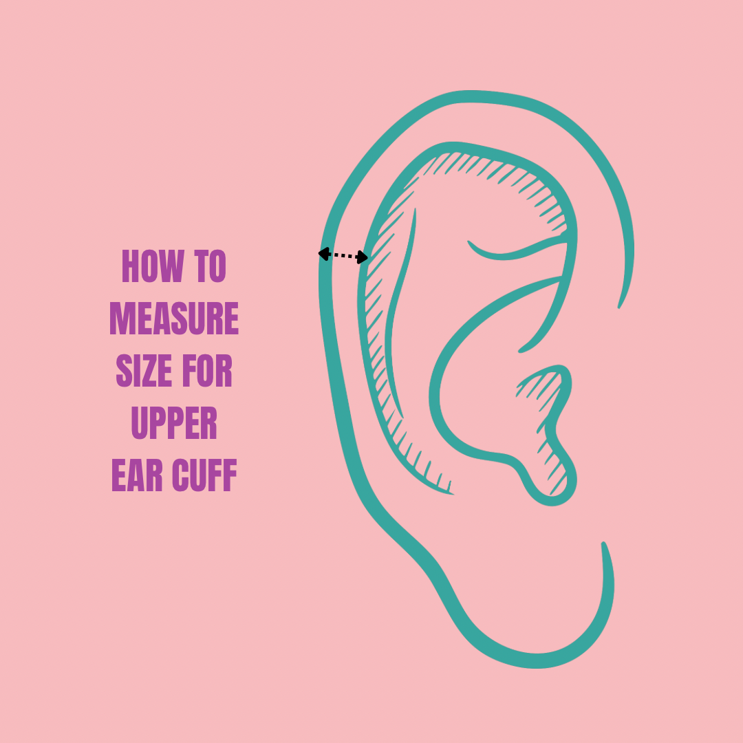 Upper ear cuff in silver 925 for everyone without piercing. Put on mid-ear with "fork" facing forward and slide up to desired position. Once in place you can gently squeeze for the perfect fit. To find your size, measure the distance as shown in the picture, if you get 5 mm, choose size S. Wear solo or stack with the regular ear cuff and silver hoops in various sizes.