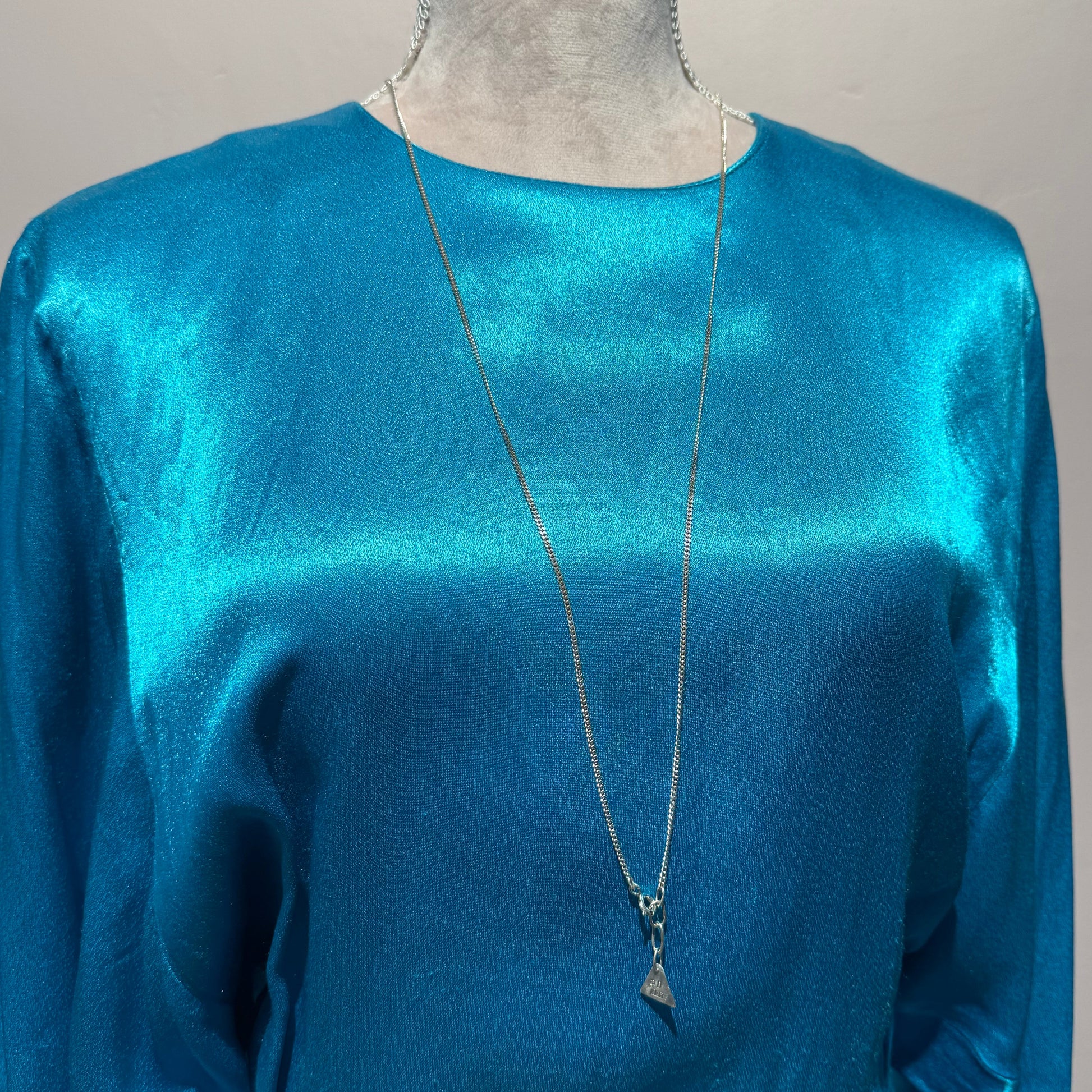 My forever favorite chain is this diamond cut curb chain. I’ve made this on in a long version, 90 cm, so you can mix it up depending 0n the outfit and the occasion. Wear it long, put on your favorite pendant, or wrap it 2 times for a short necklace. The tag at the end is stamped with 925 and aD. If you have an outfit with an open pack, it looks so sassy to just loop it through the lock and leave it hanging along the spine.