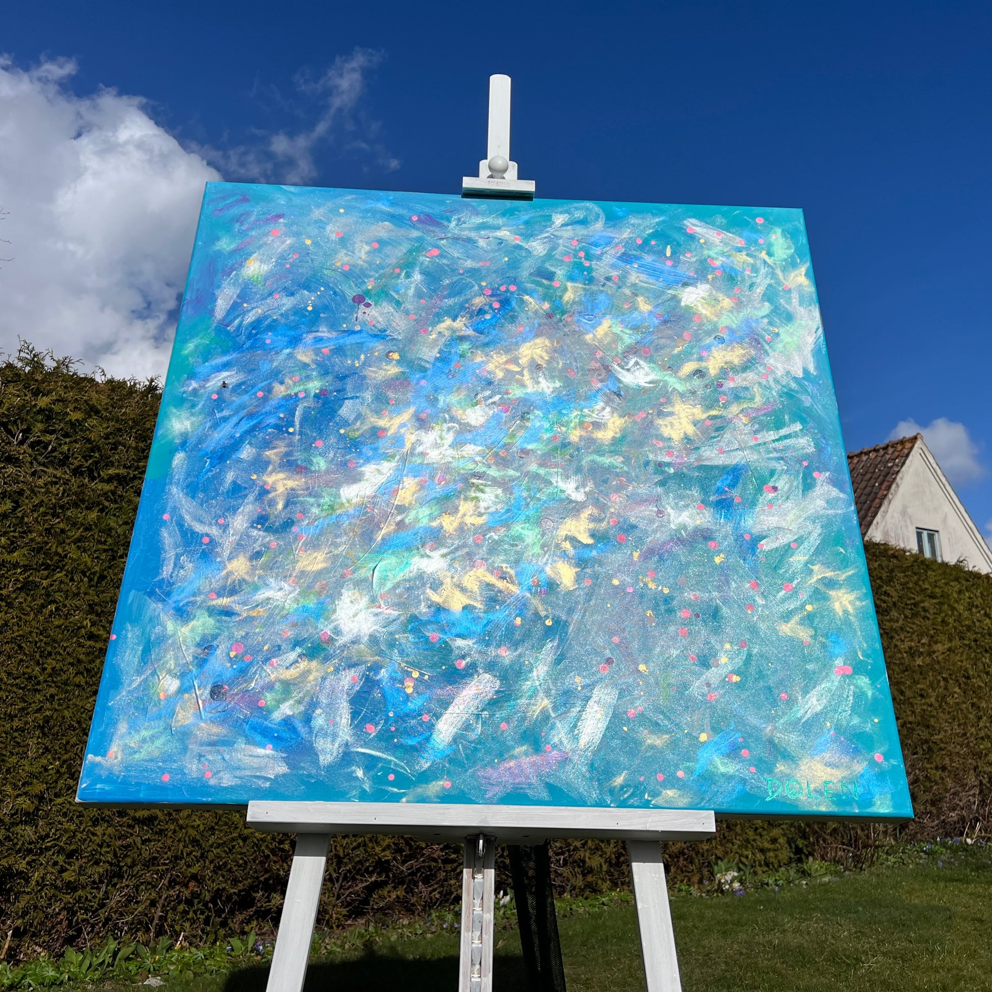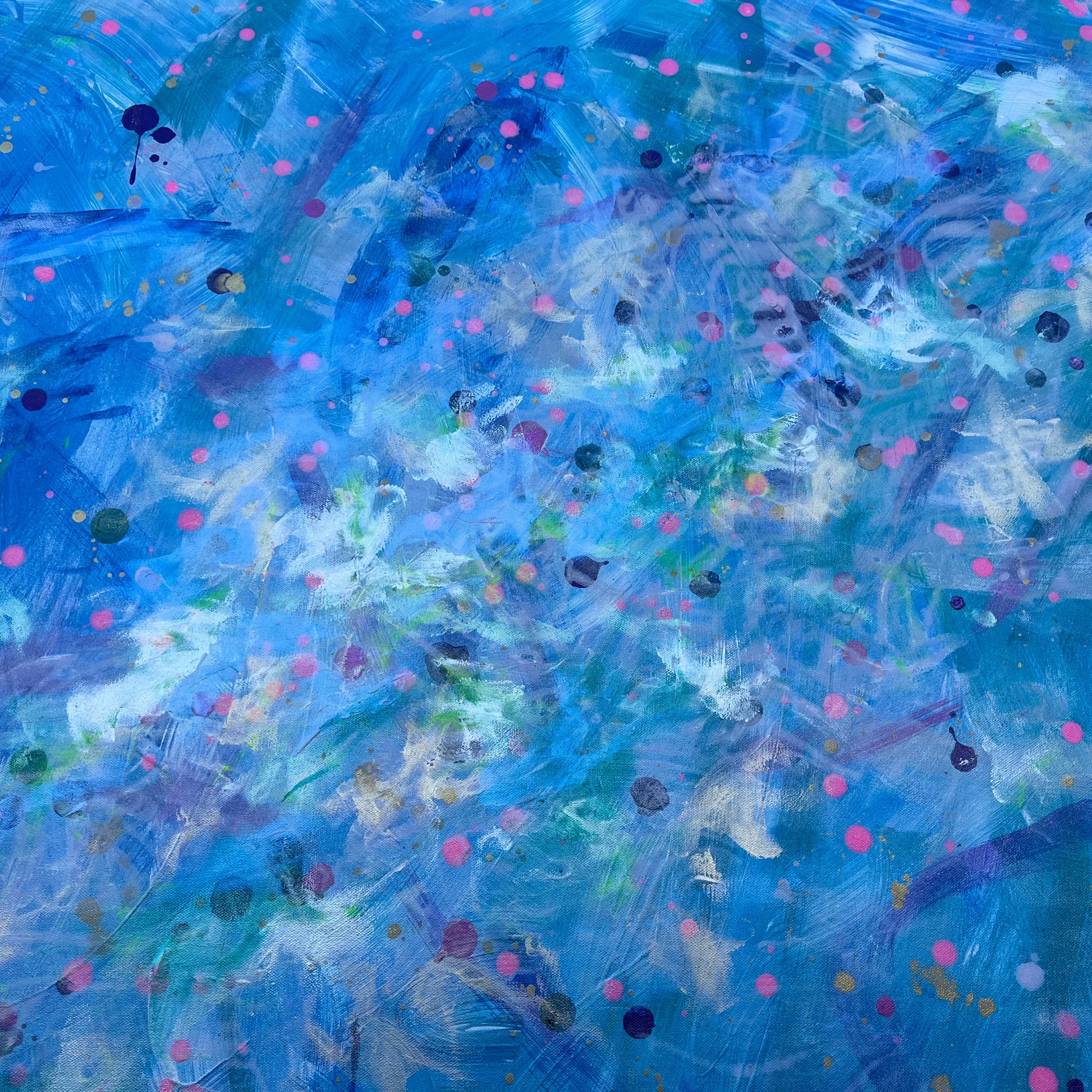 story: This is painting number 2/3 in the “EXTASEN-SERIES”. It holds galactic codes and activations from several star clusters. The pearlescent shades of Blue, Turquoise, Green, Purple & Pink, lives in an organized chaos. Each layer represents unique frequencies that connect with different souls on earth right now. This communication is beyond words and channels through to each soul via color, texture and sound.