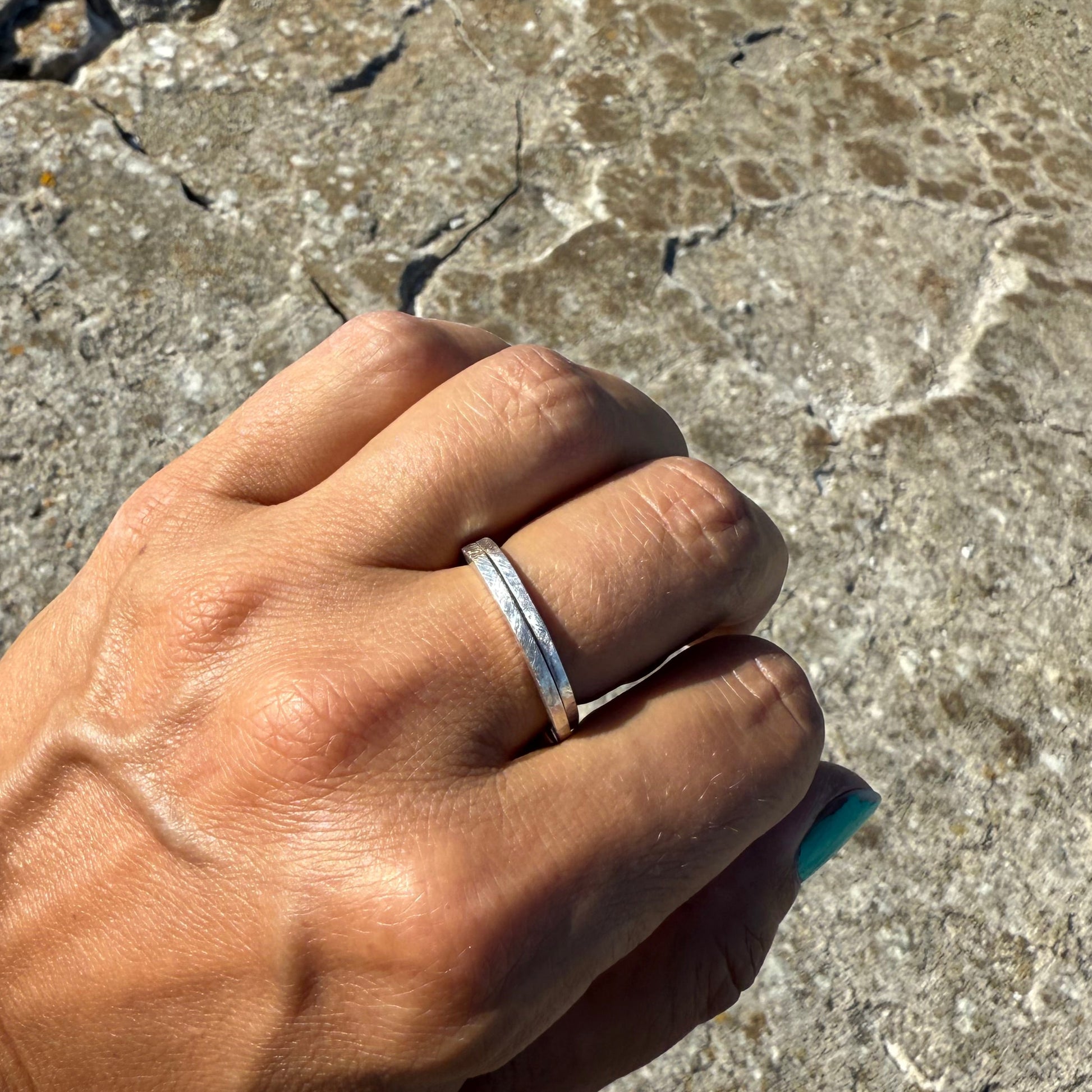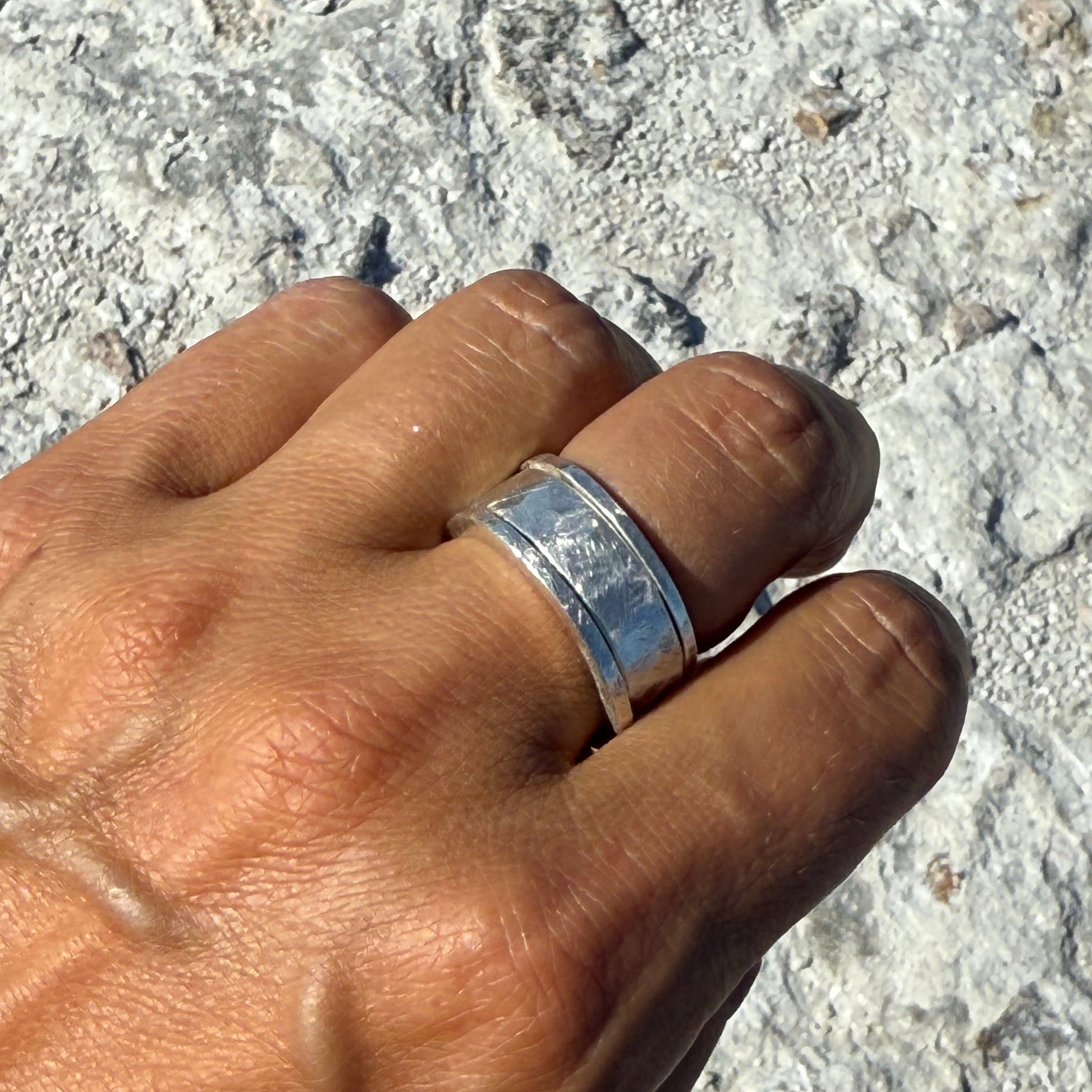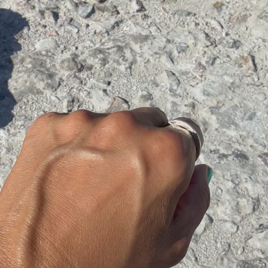 The HEROINE silver ring is bold, but feels super light to wear. The hammered and brushed texture gives each piece a unique grit and structure. Stamped with 925 and aD.