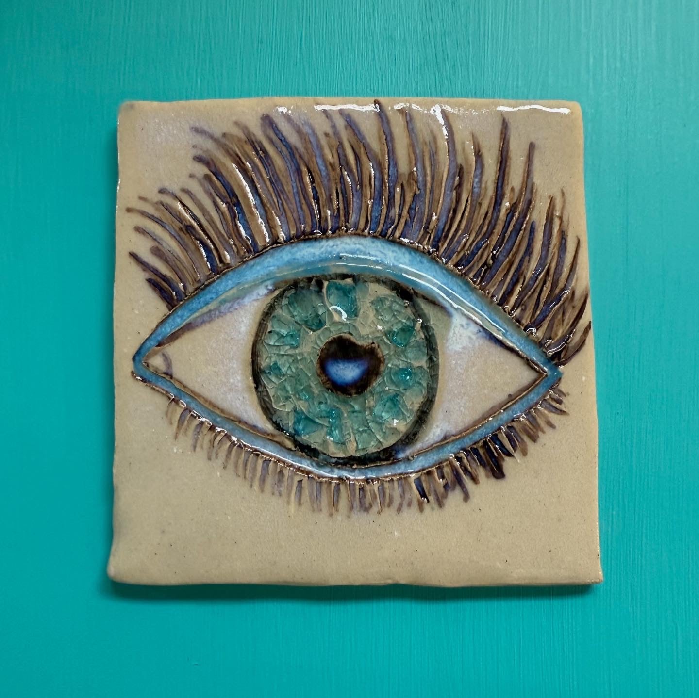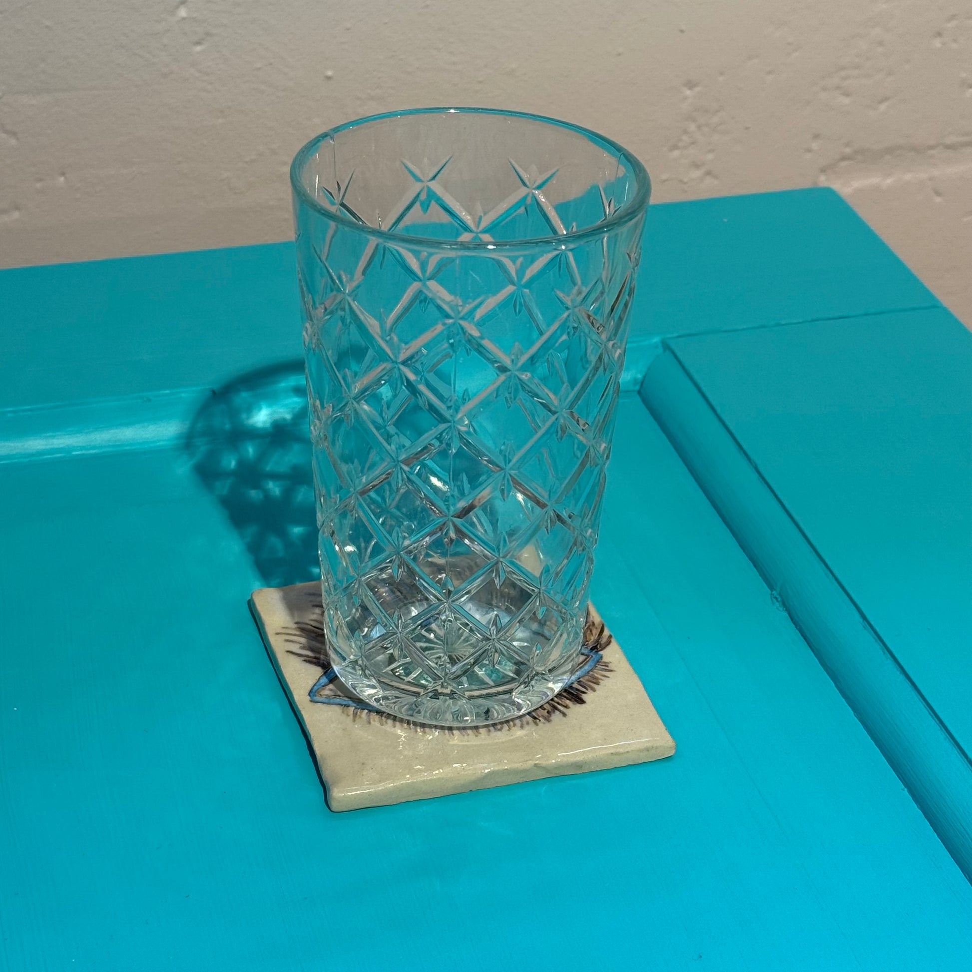 Square ceramics art piece with LORELEYE. Place in the window sill, decorate your desk, or use as a coaster for your favorite drink.
