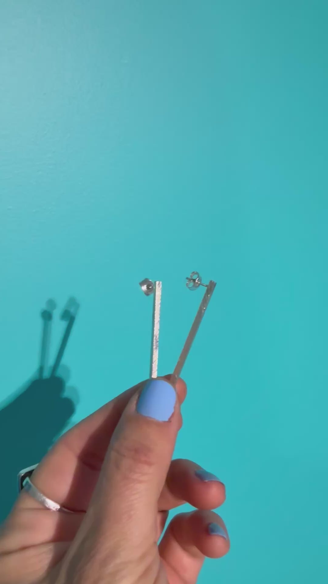 Clean & simple, these brushed silver 925 earrings are the perfect match to your daily outfit, gala dress or suit. The square bars are hollow, which makes the earrings super light and comfy.