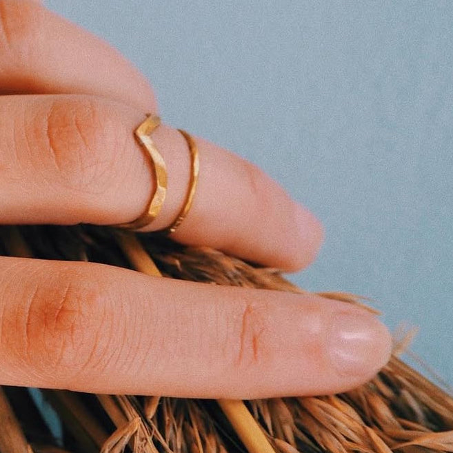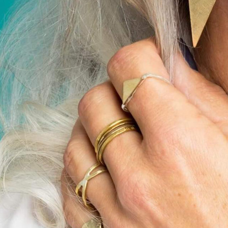The thin BRASS ring feels like a second skin. Hammered, yet smooth, it is sheer, yet a staple. Stack or wear solo, as thumb ring, upperfingerring or simply as a regular ring.