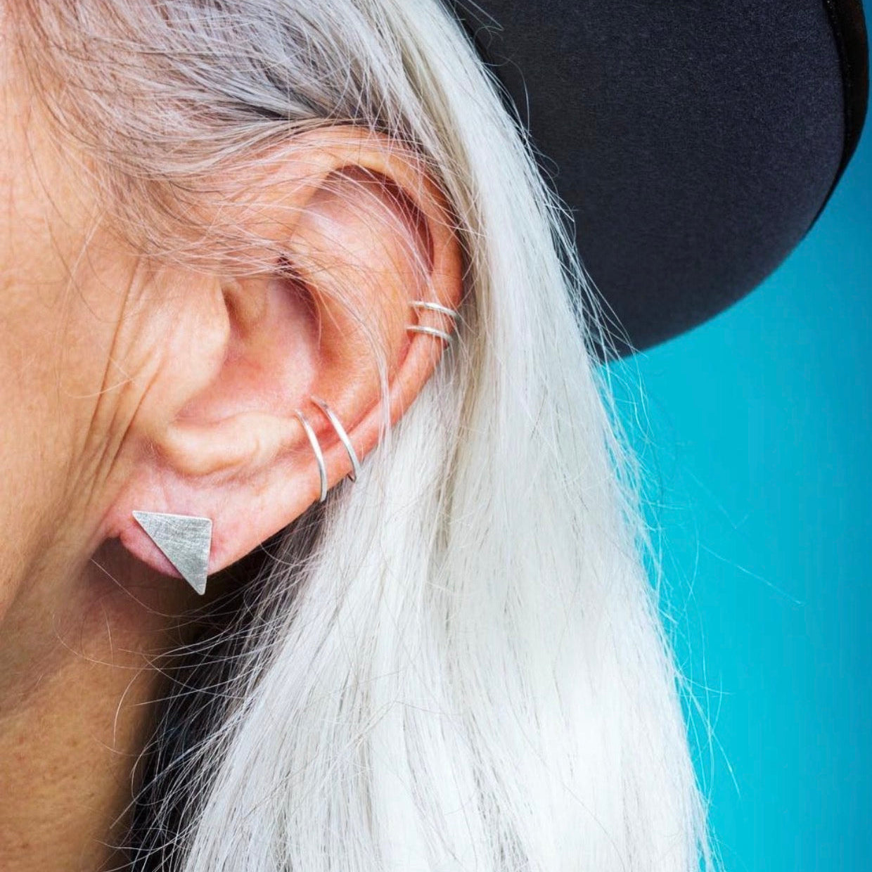 Upper ear cuff in silver 925 for everyone without piercing. Put on mid-ear with "fork" facing forward and slide up to desired position. Once in place you can gently squeeze for the perfect fit. To find your size, measure the distance as shown in the picture, if you get 5 mm, choose size S. Wear solo or stack with the regular ear cuff and silver hoops in various sizes.
