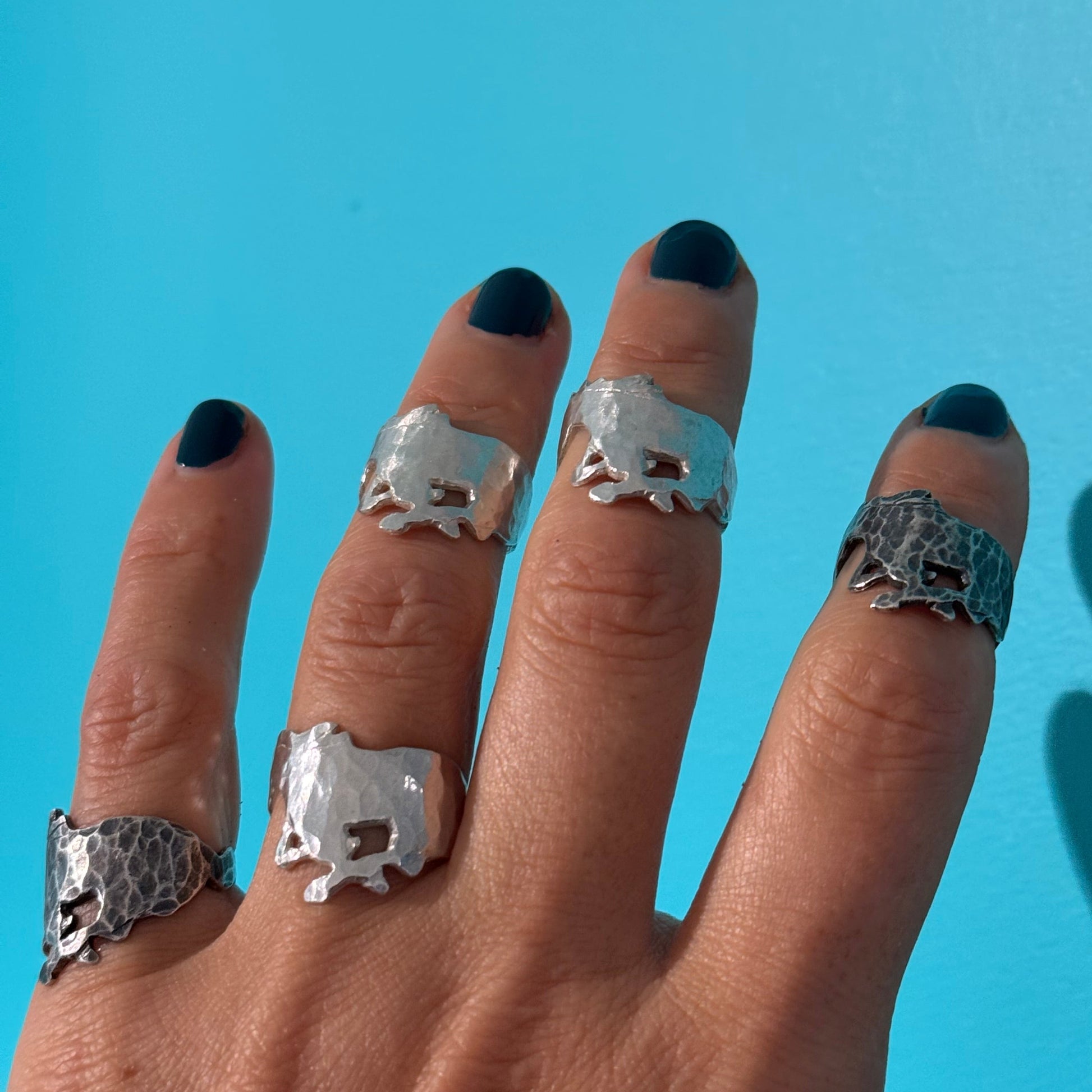 Horses mean a lot to me, not only because they are wild, powerful and free, but they also visit me in meditations. Whenever I wear the horse ring I feel like I have a guardian angel with me. The ring comes in silver, but if you'd like it oxidized (blackened), just leave me a note at checkout. Wear with hooves facing inwards for best fit. Stamped with 925 and aD inside the band.